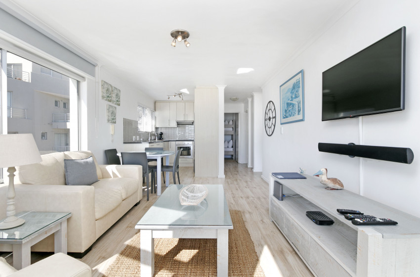 Guests will have access to the communal outside swimming pool, 24-hour security and use of a secure parking garage. The apartment's prime location offers guests easy access to numerous shopping and fashion attractions, as well as many beachfront restaurants, cafés and bars. Furthermore, the complex is on the MyCiTi bus route, with a bus stop within walking distance, for a stress-free travelling experience in and around Bloubergstrand. The area is a short drive from the Cape Town City Centre and serves as the entrance to the beautiful West Coast - home to a wide selection of charming towns and a luscious nature reserve waiting to be explored.