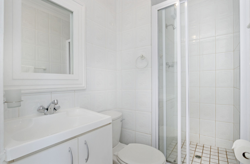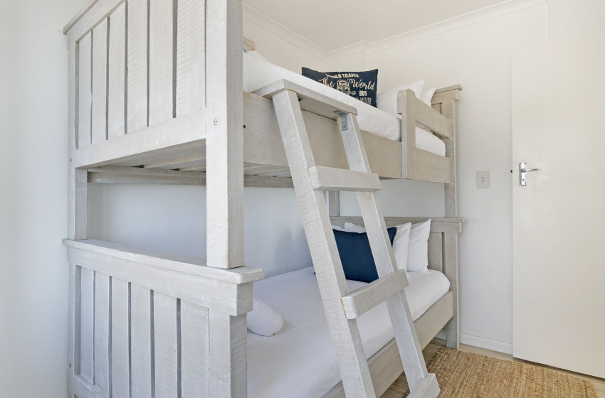 The main bedroom has built-in cupboards, a queen-size bed and balcony access with stunning ocean views. The second bedroom has beautiful natural wood bunk beds - ideal for children. The apartment has 2 bathrooms - one featuring a bathtub and shower and the other a shower only.